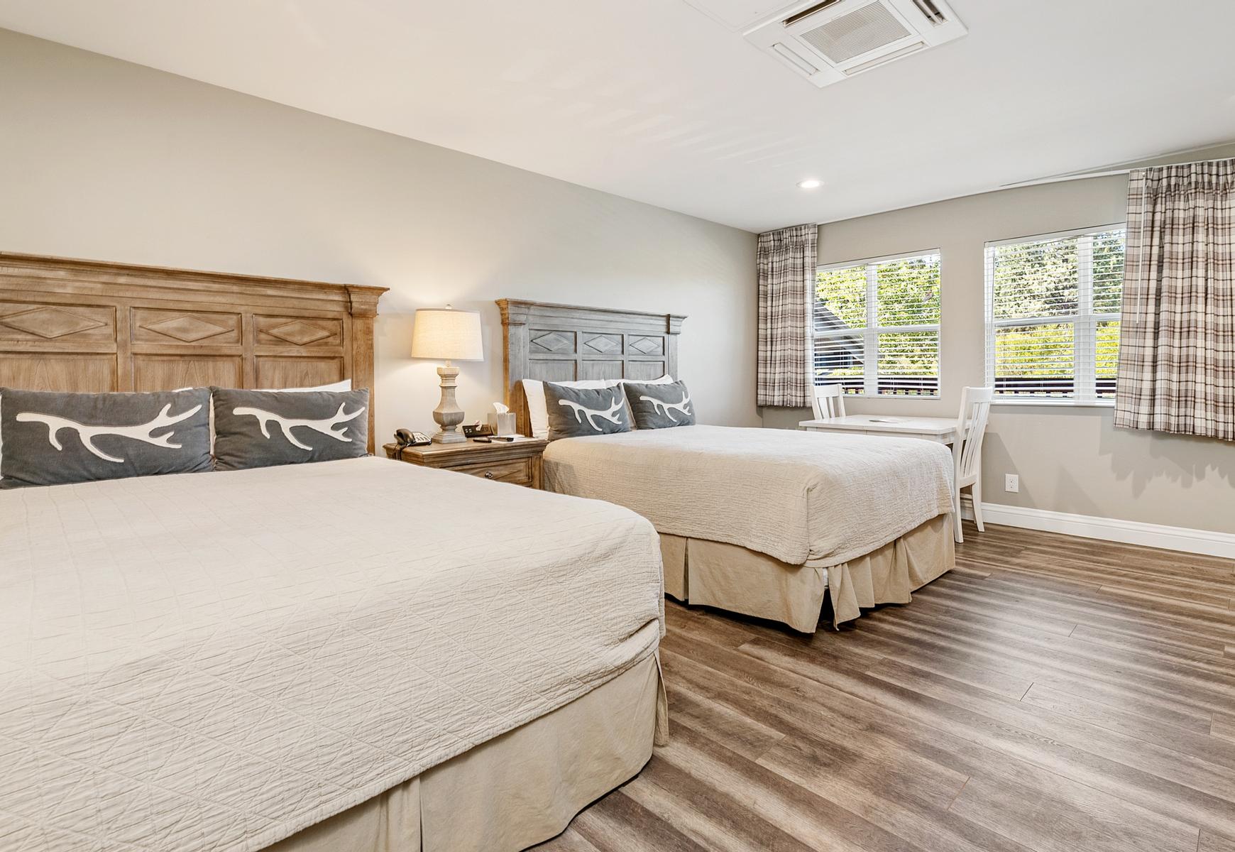 Additionally, each cabin is outfitted with a toasty fireplace to keep guests warm at all hours. Both our hotel and cabins are pet-friendly, so you can bring the whole family to our lakeside location on your next Big Bear Lake excursion.